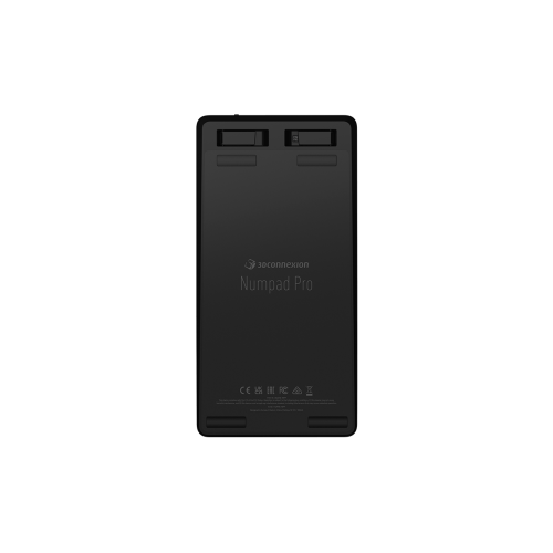 3Dconnexion Numpad Pro оснащений дев'ятьма програмованими клавішами, включаючи чотири клавіші 3Dconnexion, які забезпечують легкий доступ до команд конкретної програми, яку ви найчастіше використовуєте. Він підключається до вбудованого приймача клавіатури бездротової мережі або безпосередньо до комп'ютера за допомогою технології Bluetooth. Його акумулятори залишаються зарядженими більше шести місяців, і їх можна заряджати, підключивши до комп'ютера за допомогою кабелю USB.