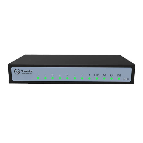 OpenVox iAG801 – аналоговий VoIP шлюз з підтримкою 8 портів FXS. Завдяки невеликому розміру та високій продуктивності шлюз iAG801 VoIP спеціально розроблений для економії місця та максимального зниження витрат. Він ідеально підходить для малих та середніх підприємств.