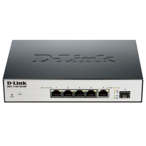 Настроюваний комутатор DGS-1100-06/ME оснащений 5 портами 10/100/1000Base-T та 1 SFP-портом і призначений для розгортання мереж Metro Ethernet і FTTx. Надійний корпус і вбудований захист портів від статичної електрики до 6 кВ забезпечують стабільну роботу в операторських мережах.