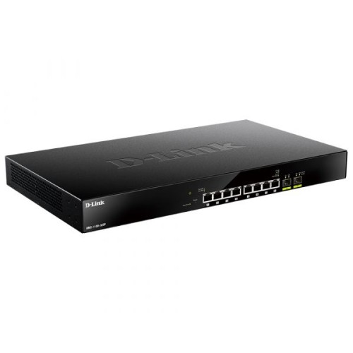 Налаштовуваний комутатор DMS-1100-10TP оснащений 8 портами 2.5GBase-T з підтримкою Power over Ethernet (PoE) для підключення по кручений парі, а також 2 портами 10GBase-X SFP+, призначеними для підключення до високошвидкісної магістралі. Завдяки підтримці технології 2.5 Gigabit Ethernet комутатор є оптимальним рішенням для роботи з бездротовими точками доступу 802.11ac Wave 2, а 10-гігабітні uplink-порти SFP+ забезпечують високу пропускну здатність при побудові масштабованих локальних мереж.
