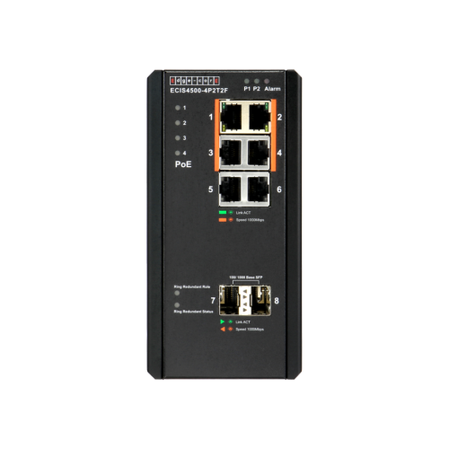 Серія ECIS4500 розрахована на роботу в екстремальних температурних умовах від –40 °C до +75 °C та підтримує холодний старт при –40 °C, гарантуючи стабільну роботу навіть у найсуворіших середовищах. Для підвищення надійності мережі комутатори підтримують швидкодіючі захисні кільця ERPS, що дозволяє миттєво відновлювати з’єднання без помітного впливу на користувачів.