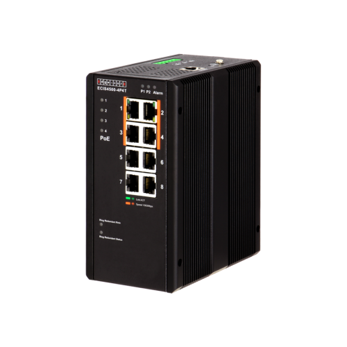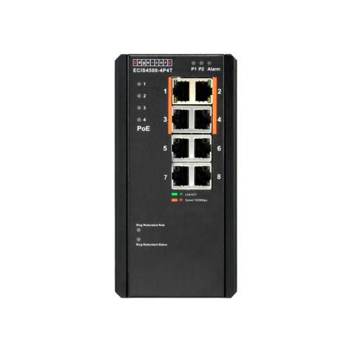 Серія ECIS4500 розрахована на роботу в екстремальних температурних умовах від –40 °C до +75 °C та підтримує холодний старт при –40 °C, гарантуючи стабільну роботу навіть у найсуворіших середовищах. Для підвищення надійності мережі комутатори підтримують швидкодіючі захисні кільця ERPS, що дозволяє миттєво відновлювати з’єднання без помітного впливу на користувачів.