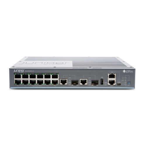 Комутатори серії Juniper EX2200 призначені для використання на малих підприємствах та віддалених філіях. Модель EX2200-C-12P-2G оснащена дванадцятьма портами 10/100/1000 та двома SFP (mini-GBIC) портами для підключення оптоволоконних модулів. Комутатор має компактний корпус, підтримує технологію PoE+ і завдяки безвентиляторній конструкції працює майже безшумно.
