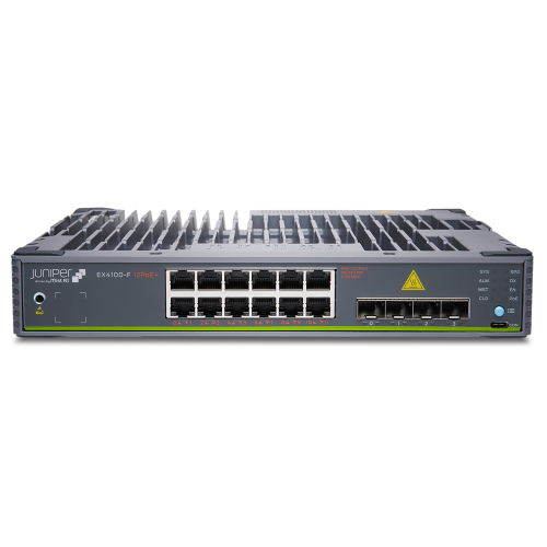 Ethernet-комутатори EX4100-F, розроблені для розгортання у відділеннях, є високопродуктивним і економічно ефективним рішенням. Компактний пристрій EX4100-F з безвентиляторним корпусом з 12 портами, 24 портами та 48 портами в 1U — це платформа комутації доступу з підтримкою штучного інтелекту. Його відрізняють такі функції, як EVPN-VXLAN, мікросегментація за допомогою групових політик (GBP), живлення через Ethernet (PoE+) і телеметрія на основі потоку. Крім того, EX4100-F-12P (компактний і безвентиляторний) може живитися від зовнішнього джерела живлення (PSE), а також забезпечувати вихід живлення через Ethernet для підключених пристроїв з живленням (PD). Будучи частиною базової інфраструктури Juniper Mist Wired Assurance, EX4100-F легко підключати, налаштовувати та керувати. Juniper Mist Cloud оптимізує розгортання та керування системою кампуса, а Mist AI спрощує операції та покращує видимість продуктивності підключених пристроїв.