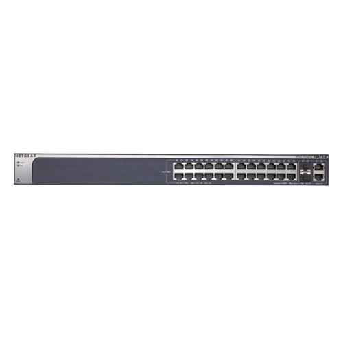 Модель NETGEAR ProSafe FSM726E — керований 24-портовий комутатор із портами 10/100 Мбіт/с, які автоматично визначають швидкість, та двома комбінованими портами Gigabit Ethernet (10/100/1000 Мбіт/с або оптика SFP). Неблокуюча архітектура забезпечує одночасну передачу даних на всіх портах на швидкості фізичного середовища з низькою затримкою. Завдяки одноюнитовому форм-фактору для стоєчної установки пристрій займає менше місця в стійці, а вартість одного порту нижча, ніж у аналогічних комутаторів Fast Ethernet.