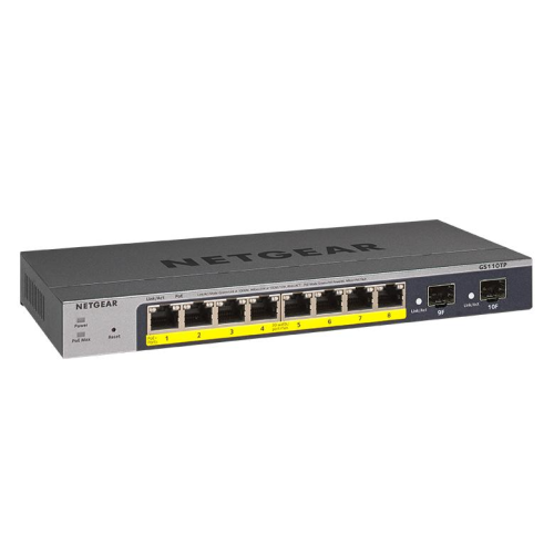 • Комутатор Netgear 8-Port Gigabit PoE+ Ethernet Smart Switch with 2 SFP Ports and Cloud Management (55W) (GS110TPv3)