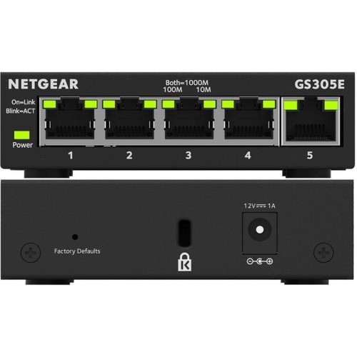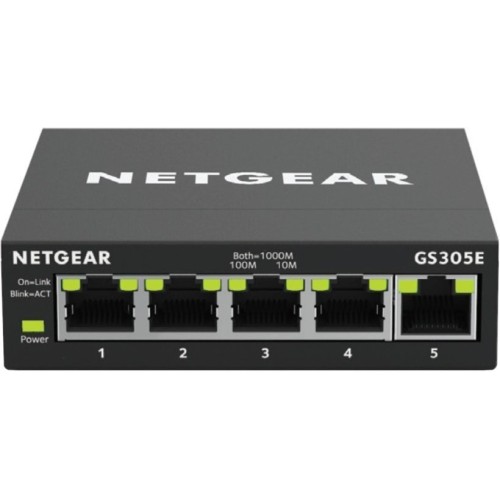 Інтелектуальний керований комутатор NETGEAR GS305E з 5 портами Gigabit Ethernet, поділом трафіку (VLAN), пріоритетом трафіку (QoS), динамічною багатоадресною розсилкою (IGMP), перевіркою стану кабелю і запобіганням створення петель і налаштуванням контролю широкомовного шторму. GS305E також включає енергоефективний Ethernet (IEEE 802.3az) для максимальної економії енергії, а завдяки інтуїтивно зрозумілому графічному інтерфейсу він забезпечує просте, надійне і доступне підключення за технологією Plug and Play.