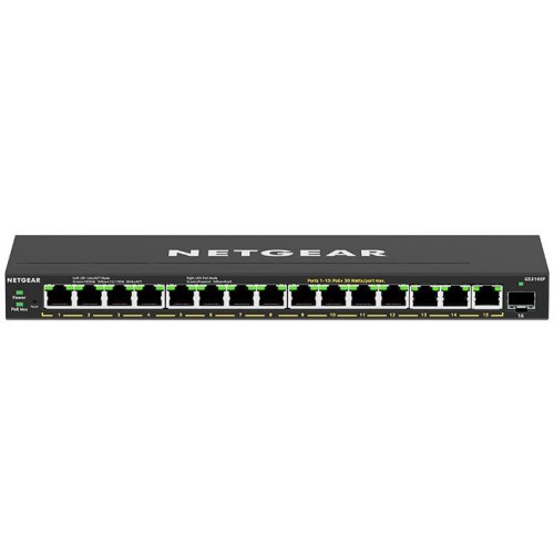 Інтелектуальний керований комутатор NETGEAR GS316EPP з 15 портами Gigabit Ethernet з підтримкою технології PoE+ та одним гігабітним портом SFP, надає прості в управлінні основні мережеві функції за доступною ціною для малого та середнього бізнесу. GS316EPP пропонує загальний бюджет потужності 231 Вт для живлення пристроїв PoE, таких як телефони VoIP, IP-камери, точки бездротового доступу. У комутаторі реалізовані технології поділу трафіку (VLAN), якості обслуговування та пріоритету трафіку (QoS), динамічної багатоадресної розсилки (IGMP), перевірки стану кабелю та запобігання утворенню петель. GS316EPP також включає енергоефективний Ethernet (IEEE 802.3az) для максимальної економії енергії, а завдяки інтуїтивно зрозумілому графічному інтерфейсу він забезпечує просте, надійне та доступне підключення за технологією Plug and Play.