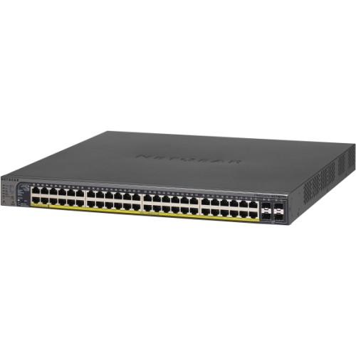 Кожен комутатор ProSafe™ Gigabit Stackable Smart PoE Switch оснащений 48 портами 10/100/1000 Мбіт/с і чотирма спільними портами SFP. На всіх портах підтримується стандартний PoE. Крім того, ці комутатори є одними з перших у галузі, що підтримують PoE+ (IEEE 802.3at) на перших чотирьох портах і можуть забезпечувати живлення до 30 Вт для потужних PoE-пристроїв, таких як дводіапазонні бездротові точки доступу стандарту 802.11n, відеотелефони та IP-камери з функціями pan/tilt/zoom.