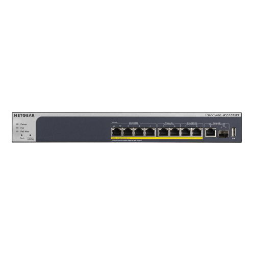 Мультігігабітние смарт комутатори серії ProSAFE Plus від NETGEAR забезпечують потужні функціональні можливості комутації на рівнях L2 + і Layer 3 Lite, підвищення продуктивності та зручність використання. Вони призначені для роботи в конвергентних мережах, в яких передача голосу, відео і даних здійснюється на базі єдиної мережевої платформи. Модель MS510TXPP підтримує функції PoE з бюджетом до 180W на восьми мультігігабітних портах. Ці комутатори оптимізовані з точки зору ефективності використання мережі, зниження операційних витрат і простоти управління. Додаткові функції, такі як статична маршрутизація IPv4/IPv6 рівня Layer 3, DiffServ QoS, агрегування каналів LACP і Spanning Tree, задовольнять вимоги, що пред'являються навіть до найсучасніших мереж малих підприємств.