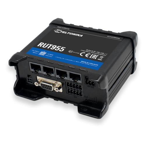 Teltonika RU Т955 - професійний промисловий, високо-і безпечний маршрутизатор 4G/LTE з I/O, GNSS і RS232/RS485. Пристрій забезпечує високу продуктивність, можливості стільникового зв'язку і визначення місця розташування GPS, резервування підключення (Dual-SIM). Роз'єми для зовнішньої антени дозволяють потрібні підключати антени і легко знаходити найкраще місце розташування сигналу.