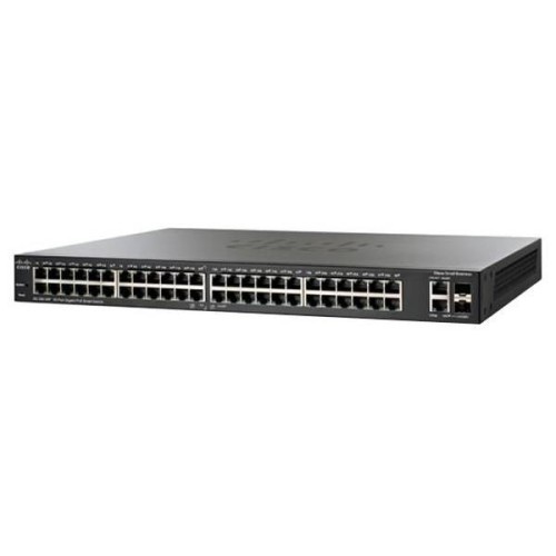 Cisco SG200-50 (48-Port Gigabit Smart Switch with 2x GE Combo) -Smart комутатор на 48 GE портів і 2 комбо-порти 1000Base-T/SFP *. Є можливість установки в 19 дюймову стійку. PoE не підтримує.