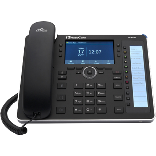 Audiocodes 445HD (UC445HDEG) - це сучасний IP-телефон для бізнесу вищого класу з підтримкою Bluetooth і Wi-Fi, великим кольоровим 4,3-дюймовим основним дисплеєм і спеціальним ЖК-дисплеєм, що відображає список контактів