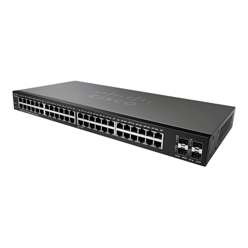 Cisco SG220-52 (48-Port Gigabit Smart Switch with 4x GE SFP) -Smart комутатор на 48 GE портів і 4 порти SFP . Є можливість установки в 19 дюймову стійку. PoE не підтримує.