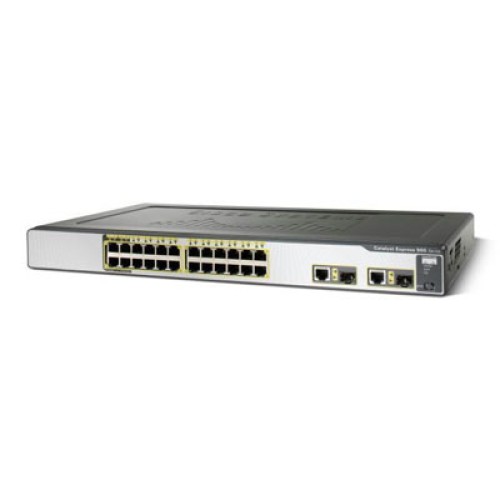 Комутатор від Cisco серії Catalyst Express 500. Серія призначена для активно зростаючого бізнесу. Комутатор оснащений: двадцятьма 10/100 портами для робочої активності; чотирма 10/100 PoE портами, які можуть підтримувати бездротові точки доступу, IP телефонію або систему відеоспостереження; двома 10/100/1000BASE-T або SFP портами (uplink). Управління та налаштування комутатора здійснюється через GUI інтерфейс.
