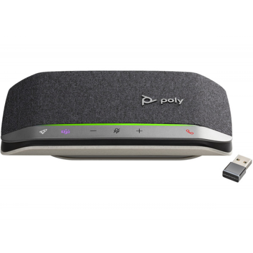 Спікерфон Poly Sync 20+ - повнодуплекний пристрій, який підтримує одночасне відтворення та передачу звуку без втрат його якості. Він ідеально підходить для невеликих приміщень площею до 16 м2.