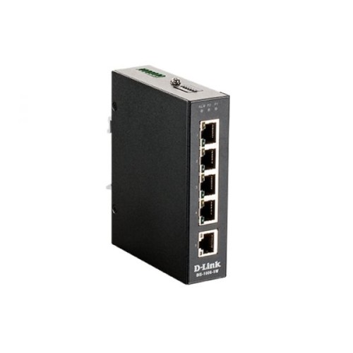 Некерований комутатор DIS-100G-5W, оснащений 5 портами 10/100/1000Base-T, призначений для мереж промислових підприємств. Комутатор підтримує технологію Plug-and-play, що дозволяє підключати пристрої без додаткових налаштувань.