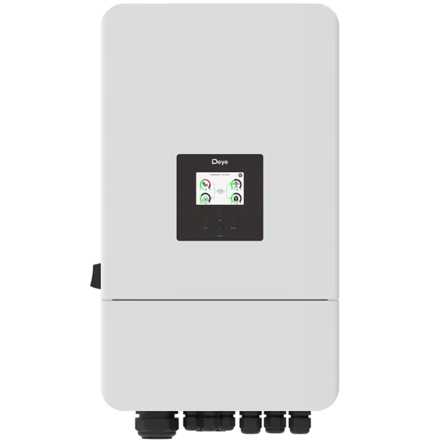 Гібридний інвертор Deye SUN-12K-SG05LP3-EU-SM2 – це трифазний високовольтний пристрій потужністю 12 кВт, призначений для великих сонячних електростанцій.