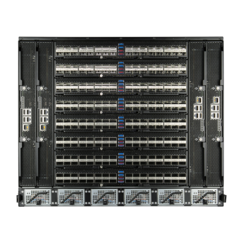 | Порти | Switch Ports: 256 x 100 G QSFP28 each supporting 100G/40G and 2 x 50G/4 x 25G/4 x 10G break-out cable Management Ports on Front Panel: Line card 2 x USB console port 2 x USB data port Fabric card 1 x RJ-45 management port 2 x RJ-45 console port 2 x USB data po rt |