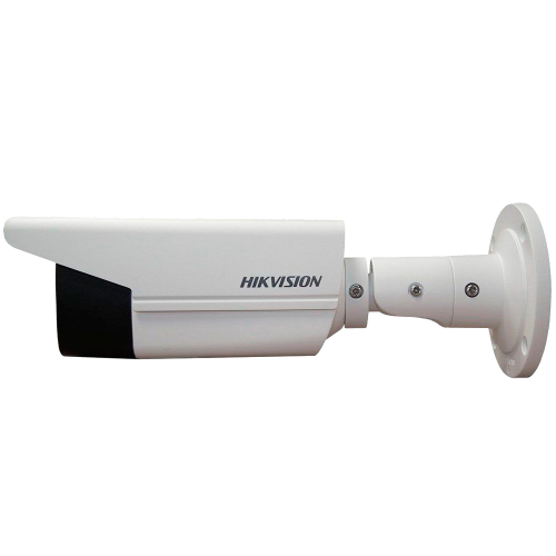 Hikvision DS-2CD2T83G0-I8 - це 8 Мп циліндрична IP відеокамера, з підтримкою криптографічного модуля HIKSSL, сертифікованого на відповідність стандарту FIPS140-2. Камера виконана в білому або чорному кольорі, що дозволяє не залучати до неї зайвої уваги на фасадах будівель. Відеокамера працює на базі матриці 1/2.5 "Progressive Scan CMOS. Запис ведеться з максимальною роздільною здатністю 3840x2160 пікселів і швидкістю 12.5 к/с. Чутливість матриці - 0.01 Люкс при апертурі F1.2, і 0 Люкс при запису з включеною ІК-підсвічуванням. Також камера має вбудований об'єктив з фіксованою фокусною відстанню 4 мм. Він забезпечує огляд по горизонталі на 79 °, по вертикалі на 42 °, і по діагоналі на 95 °. Вбудована ІЧ-підсвічування висвітлює відстань до 80 метрів, а вбудований ІК-фільтр дозволяє камері змінювати денний режим на нічний самостійно, регулюючи при цьому чутливість і переводячи запис в чорно-білий режим. при монтажі, положення камери можна змінювати в трьох площинах: поворот від 0 ° до 360 °, нахил від 0 ° до 100 °, обертання від 0 ° до 360 °.