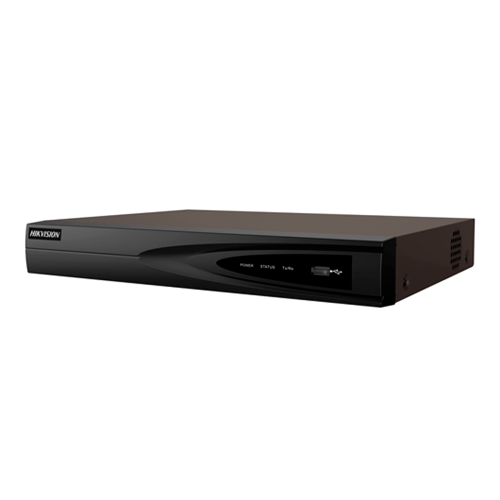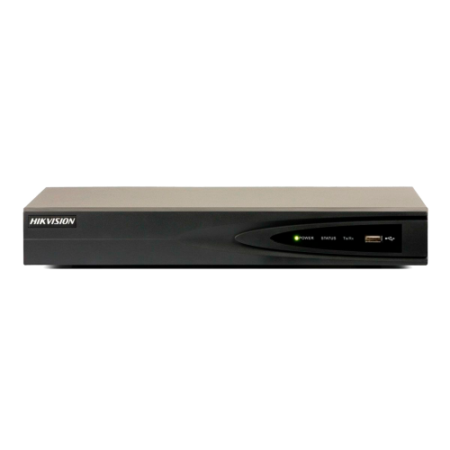 Hikvision DS-7604NI-K1-B - відеореєстратор який одночасно обслуговує IP камери по 4 каналам. По лінії транслюються подвійним потоком сигнали відео та аудіо, які стислі кодеками H.265, H.265 +, H.264, H.264 + або MPEG4, використовуючи смугу пропускання: на вході 40 Мбіт/с і на виході 80 Мбіт/с . Переговори відбуваються по дуплексному каналу зв'язку, використовуючи 1 аудіовхід RCA. Записуються дані двома потоками з дозволом 8MP, 6MP, 5MP, 4MP, 3MP, 1080p, UXGA, 720p, VGA, 4CIF, DCIF, 2CIF, CIF, QCIF. З дозволом 4 каналів 1080P допустимо відтворення відео одночасно з 4 камер або по 1 каналу в дозволі 8MP. На виході роз'єми для під'єднання монітора VGA і HDMI, 1 аудіовхід і 1 аудіовихід RCA. До SATA порту підключається жорсткий диск до 6 ТБ. Зберігаються дані на HDD, на USB пристрій або по мережі. Мережеве забезпечення ймовірно з підтримкою 1xRJ45 10M/100M/1000M. Також є роз'єми 2xUSB2.0. Електроживлення: DC 12V і потужність споживання ≤ 10 W (без HDD). Пластиковий корпус стандартним розміром 1U придатний для розміщення в стійці.