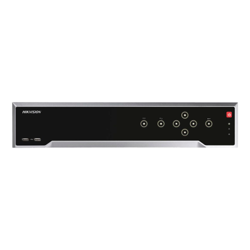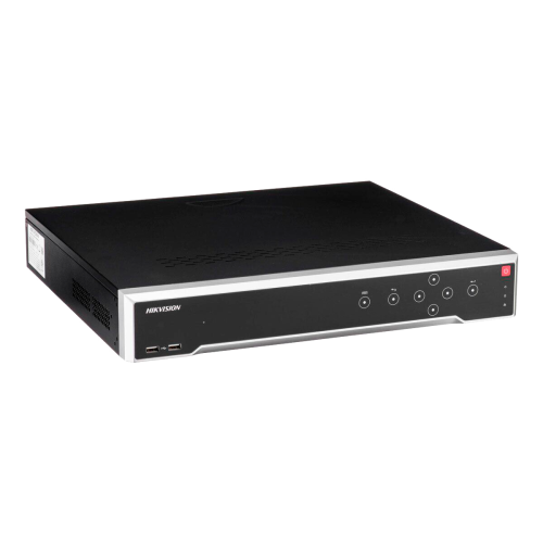 відеореєстратор Hikvision DS-7716NI-I4 (B) - 16-канальний IP відеореєстратор, має дозвіл запису і відтворення 12 Мп, відеосжатія кодеками H.265/H.265 +/H.264/H.264 +/MPEG4, бітрейт на вході 160 Мбіт/с і на виході 256 Мбіт/с, розумний пошук відеозаписів. Дані обробляються за допомогою вбудованого процесора і 2 операційних систем. Підключається 16 IP-камер з роздільною здатністю до 12 Мп. Є два HDMI виходу з дозволом 4К (3840x2160) і 1920x1080р відповідно, а також VGA вихід з дозволом 2560x1440 пікселів і CVBS вихід з дозволом PAL: 704x576 пікселів або NTSC: 704x480 пікселів. Можливість синхронного відтворення 16 каналів в Full HD дозволі (1080p) або 2 каналів - 12 Мп, 4 каналів - 8 Мп, 8 каналів - 4 Мп. По одному каналу може здійснюватися двосторонній аудіо зв'язок - є 1 аудіовхід і 1 аудіовихід. Управління відеореєстратором, перегляд записів і завантаження архіву може здійснюватися по мережі. Є 2 самоадаптівних мережевих інтерфейсу RJ45 10/100/1000 Мбіт/с. Підтримуються мережеві протоколи: TCP/IP, DHCP, Hik-Connect, DNS, DDNS, NTP, SADP, SNMP, SMTP, NFS, iSCSI, UPnP ™, HTTPS. Живлення 100-240 В від блоку живлення, що йде в комплекті. Запис відео на 4 HDD диска об'ємом до 8 ТБ кожен, купуються окремо. Зовнішній диск приєднується до eSATA порту. Для підключення виконавчого обладнання і датчиків руху реєстратор оснащений 16 тривожними входами і 4 релейними виходами.