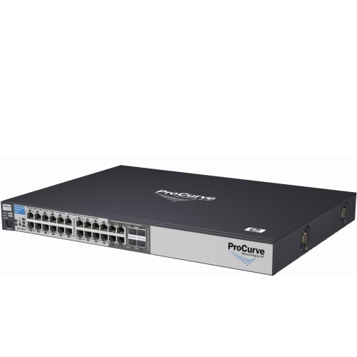 HP 2520-24G-PoE – керований комутатор із підтримкою PoE, призначений для малих та середніх підприємств. Модель оснащена 20 портами RJ-45 10/100/1000 з автоматичним визначенням швидкості та підтримкою PoE (IEEE 802.3af), а також 4 портами подвійного призначення, які можуть використовуватися як RJ-45 10/100/1000 PoE або слот SFP для оптоволоконних трансиверів. Дуплексний режим портів: 10/100 Мбіт/с – напів- або повнодуплексний, 1000 Мбіт/с – тільки повнодуплексний. Пристрій оснащений послідовним портом консолі RJ-45 та підтримує авто-визначення типу кабелю (Auto-MDIX).