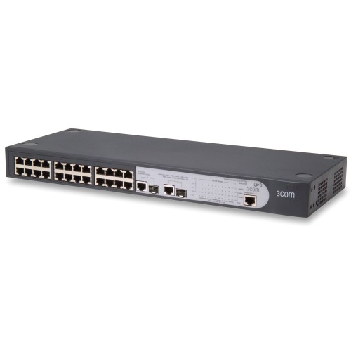 Модель оснащена 24 портами 10/100 Мбіт/с і 2 комбінованими портами 10/100/1000 Мбіт/с (RJ-45/SFP), що дозволяє підключати як стандартні мережеві пристрої, так і оптичні магістралі. Комутатор підтримує монтаж у стандартну 19-дюймову шафу, що робить його зручним для організації централізованої мережевої інфраструктури.