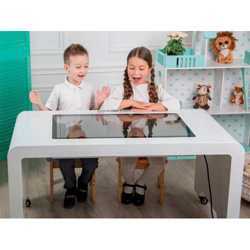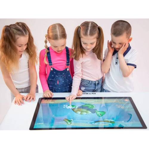 Дитячий інтерактивний стіл INTBOARD STYLE має діагональ 43 дюйми, ідеально підходить для навчання або розваг до 6 дітей одночасно. Має яскраві кольори. Виготовлений з екологічно чистих матеріалів, що дозволяє його використовувати дітям. Екран покритий загартованим захисним склом, але якість зображення або швидкість реакції від цього не страждає. Використовується ємнісна технологія, як в телефонах або планшетах.
