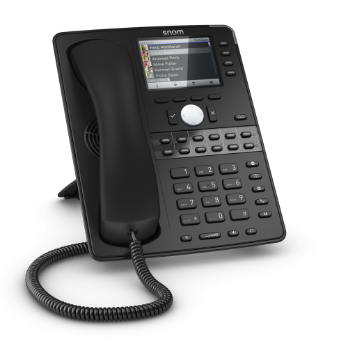 Snom D765 - це IP-телефон бізнес класу від німецького виробника VoIP обладнання. Сучасний дизайн, кольоровий дисплей з високою роздільною здатністю, кнопки BLF з вбудованими світлодіодами, наявність Bluetooth, все це для зручності в використання з високою продуктивністю і доступністю. Підтримує 12 SIP аккаунтів і 16 програмованих клавіш з вбудованими світлодіодами. Оснащений двома гігабітними портами. Покращена якість звуку за рахунок цифрового процесора сигналів (DSP).
