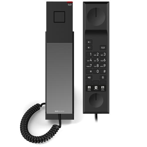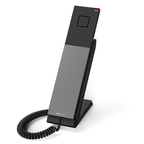 Snom HD300A – стаціонарний аналоговий телефон, розроблений спеціально для готельних номерів і житлових приміщень. Його важливою перевагою для сфери гостинності є антибактеріальний корпус, що зменшує ризик поширення мікробів. Світлодіодний індикатор чітко сигналізує про вхідні дзвінки чи повідомлення, а змінна панель на корпусі дозволяє наносити індивідуальні принти для персоналізації. Телефон можна встановлювати як на стіні, так і на столі. Крім того, він повністю відповідає вимогам GDPR, не зберігаючи персональні дані та набрані номери гостей.