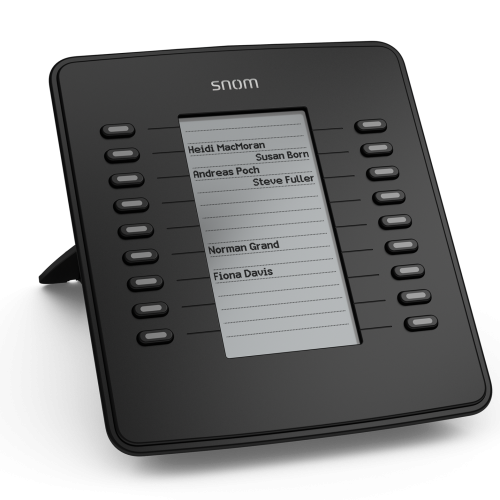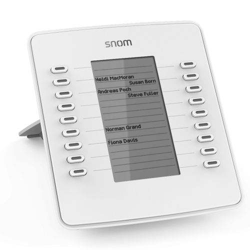 Модуль розширення Snom D7 має 18 світлодіодних кнопок швидкого доступу, які можуть бути запрограмовані на всі функції, доступні на телефонах Snom. Дисплей з високою роздільною здатністю забезпечує прекрасний візуальний інтерфейс. Три модуля розширення D7 можуть бути з'єднані послідовно, щоб додати до 54 функціональних клавіш на ваш телефон. Останній D7 в ланцюзі пропонує USB-порт для підключення інших периферійних USB-пристроїв до головного телефону.