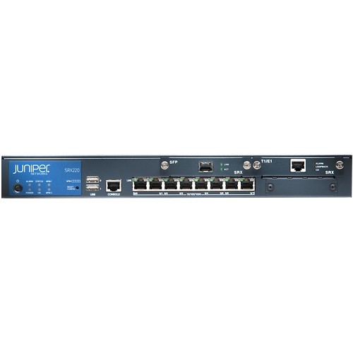 Маршрутизатор Juniper SRX220 - забезпечує безпеку маршрутизації і підтримує міжмережеві екрани з пропускною спроможністю до 950 Мбіт/с, IPsec VPN зі швидкістю 100 Мбіт/с і IPS зі швидкістю 80 Мбіт/c. Пристрій оснащений додатковими функціями забезпечення безпеки, в тому числі уніфікованої захистом від загроз (UTM), що включає систему запобігання вторгнень (IPS), фільтри для захисту від вірусів, спаму і веб-фільтрацію. Шлюз SRX220 - оптимальне рішення для захисту розподілених корпоративних мереж малого і середнього розміру.