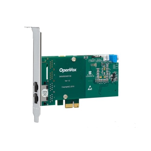 Плата OpenVox D230E зараз є лідером серед Двопортовий T1/E1/J1 PCI-E карт на ринку. Вона підтримує до 64х каналів в потоці E1 або 48 каналів в потоках T1/J1.