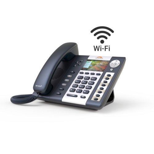 Бездротовий цифровий IP-телефон Platan IP-T216CGW – це елегантний телефон для вимогливих користувачів. Великий кольоровий дисплей, двокольорові клавіші швидкого набору, можливість використання до 5 модулів розширення Platan EXT-244CG та кілька SIP-акаунтів роблять цю модель ідеальним рішенням для менеджерів, секретарів та диспетчерів. Вбудований комутатор із двома портами Ethernet 1 Гбіт забезпечує швидку передачу даних між пристроєм та підключеним комп'ютером. Бездротовий дводіапазонний зв'язок Wi-Fi розширює свободу вибору розташування телефону та покращує естетику його оточення.