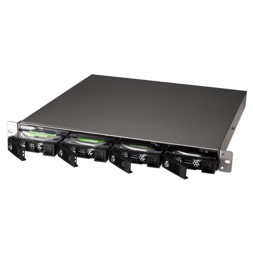 QNAP TS-439U - це багатоцільовий мережевий RAID-накопичувач для установки в стійку, в якому функції надійного файлового сховища суміщені з професійною продуктивністю, доповнені функціями iSCSI Target/Initiator, а також можливістю зміни рівня RAID і збільшення ємності дискового простору без зупинки роботи.