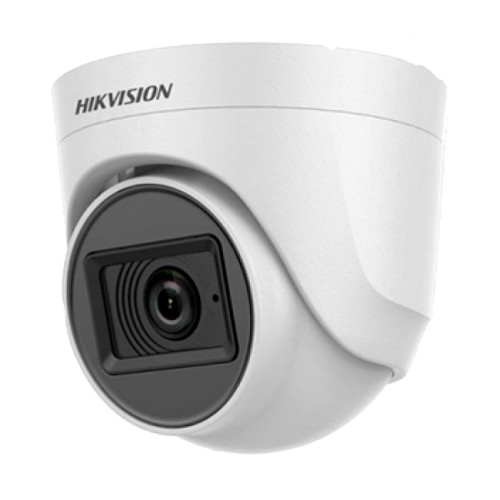 Hikvision DS-2CE76H0T-ITPFS (3.6 мм) - купольна 5 мегапіксельна мультиформатна TurboHD відеокамера DS-2CE76H0T-ITPFS з вбудованим мікрофоном і інфрачервоним підсвічуванням серії H0T від виробника Hikvision - прекрасний вибір для організації відеоспостереження за приватним будинком, офісом або підприємством. З її допомогою можна контролювати периметр всередині приміщення, а підтримка всіх форматів TVI/AHD/CVI/CVBS робить її універсальним рішенням. Камера виконана в форм-факторі Turret, матеріал корпусу пластик. Зовнішні інтерфейси представлені у вигляді косички з двома роз'ємами тип мама: живлення DC 12В, інтерфейс BNC для підключення коаксіального кабелю. Говорячи про основні характеристики можна відзначити що камера оснащена сенсором з роздільною здатністю 5МП (2560х1944px) і чутливістю 0.01 люкс, фіксованим об'єктивом з фокусною відстанню 3.6 мм і кутом огляду по горизонталі 80 °, інфрачервоним підсвічуванням з дальністю до 20 метрів. З переваг - вбудований мікрофон і передача аудіо по сигнальному кабелю (* аудіо працює тільки в режимі TVI з TurboHD реєстраторами -S, приклад iDS-7208HQHI-M1/S), підтримка стандартів TVI/AHD/CVI/CVBS, експлуатація при температурах від - 40 ° C до + 60 ° C, низьке енергоспоживання, зручне регулювання в 3х площинах, наявність OSD меню управління і сучасний дизайн.