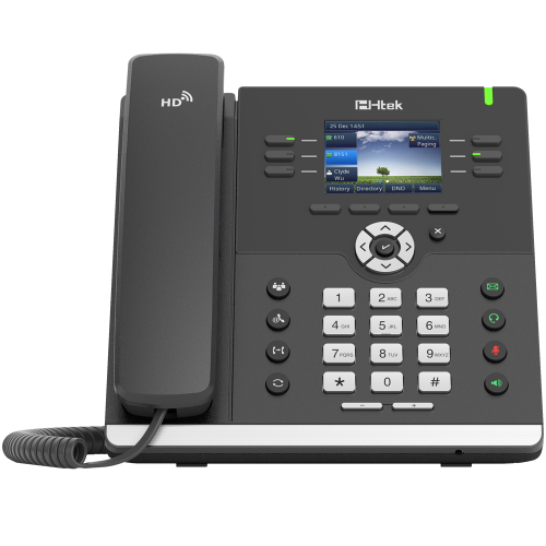 IP-телефон Htek UC923 є інноваційним Gigabit IP-телефоном з кольоровим екраном і підтримкою 5-ти сторонньої конференц. Htek UC923 - це оптимальне рішення для керівників, які приймають важливі рішення, для адміністративних помічників і тих, хто працює з сумісними програмами на ПК. IP телефон оснащений чіпсетом американського виробника Texas Instruments® (TI) і забезпечує кристально чистий звук HD Voice.