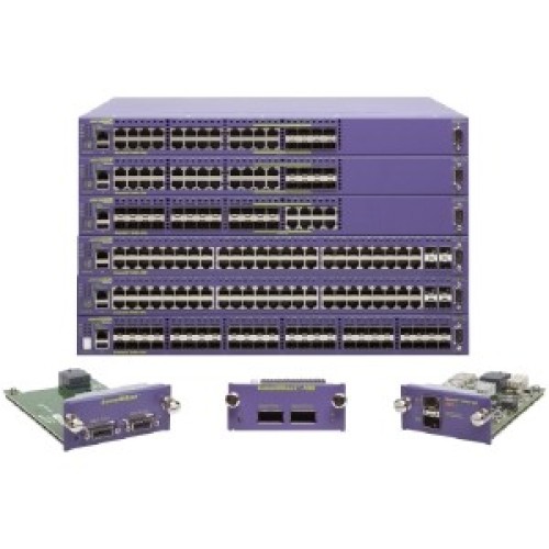 48: 100/1000BASE-X unpopulated SFP, XGM3 slot, Stacking module slot, DC PSU with one unpopulated PSU slot, Fan module, ExtremeXOS Edge license